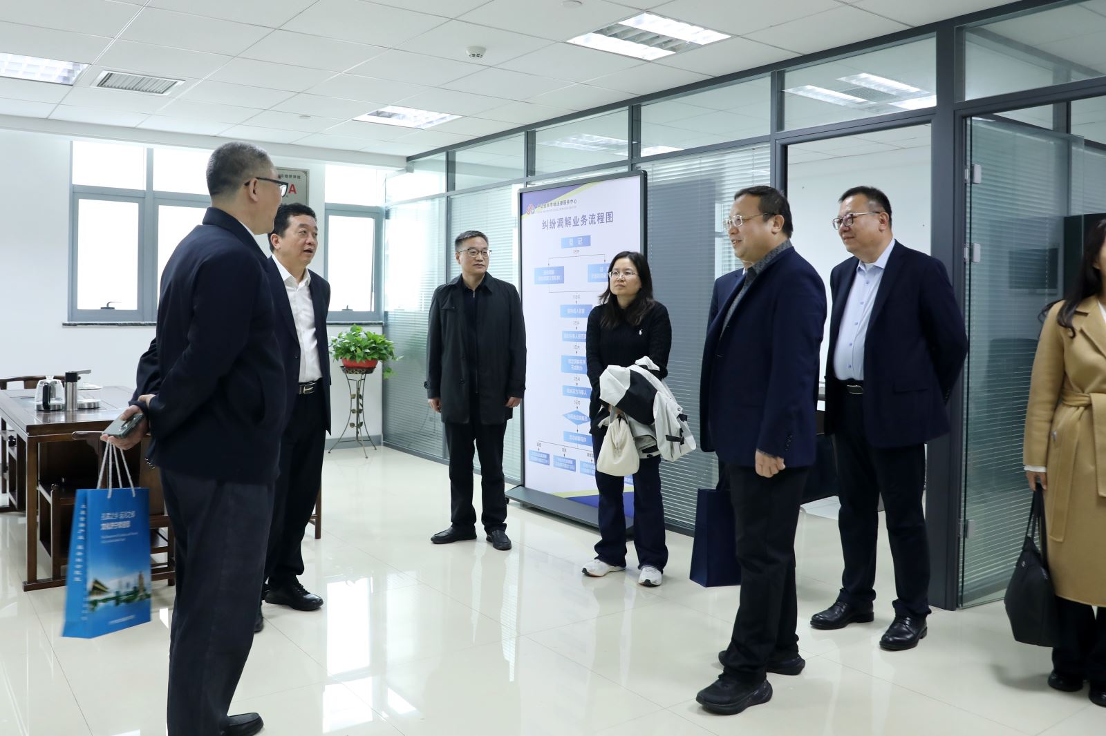 仪式结束后,与会领导集体参观了调解驿站,详细了解驿站的功能布局与服务流程。