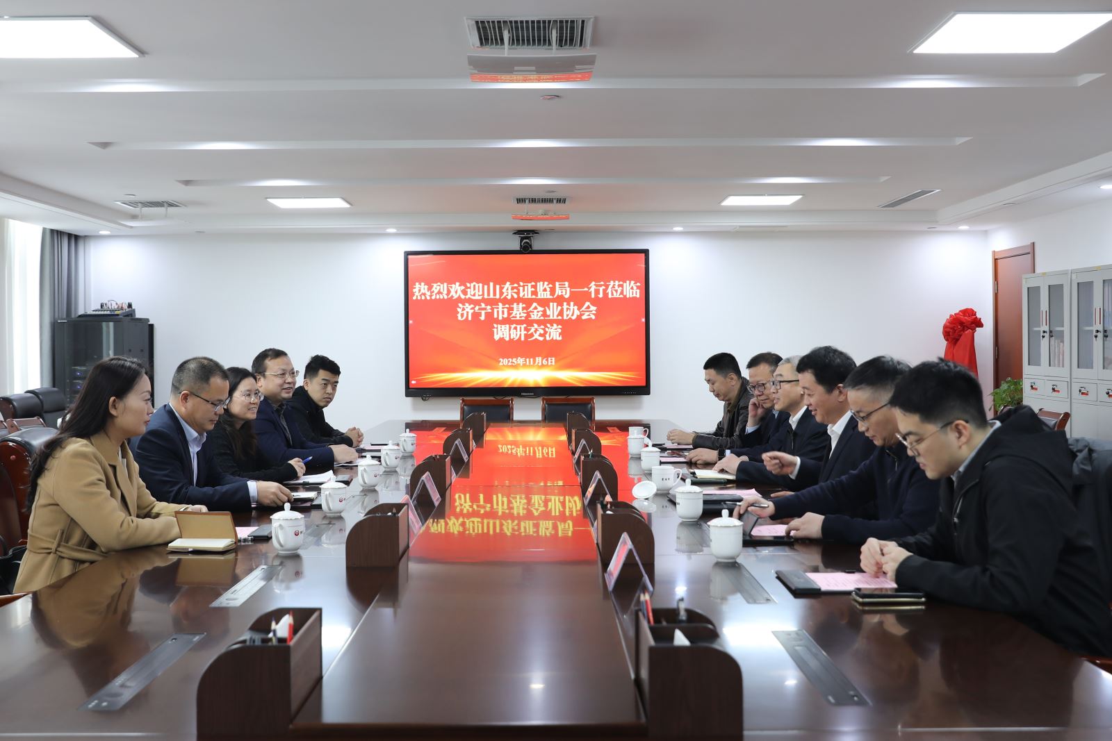 山东省基金业协会综合部部长王妮,中泰证券股份有限公司济宁分公司总经理张雷,中信证券(山东)有限责任公司济宁吴泰闸路证券营业部总经理韩国发,长江证券股份有限公司济宁金宇路证券营业部总经理乔阳等参加揭牌仪式。