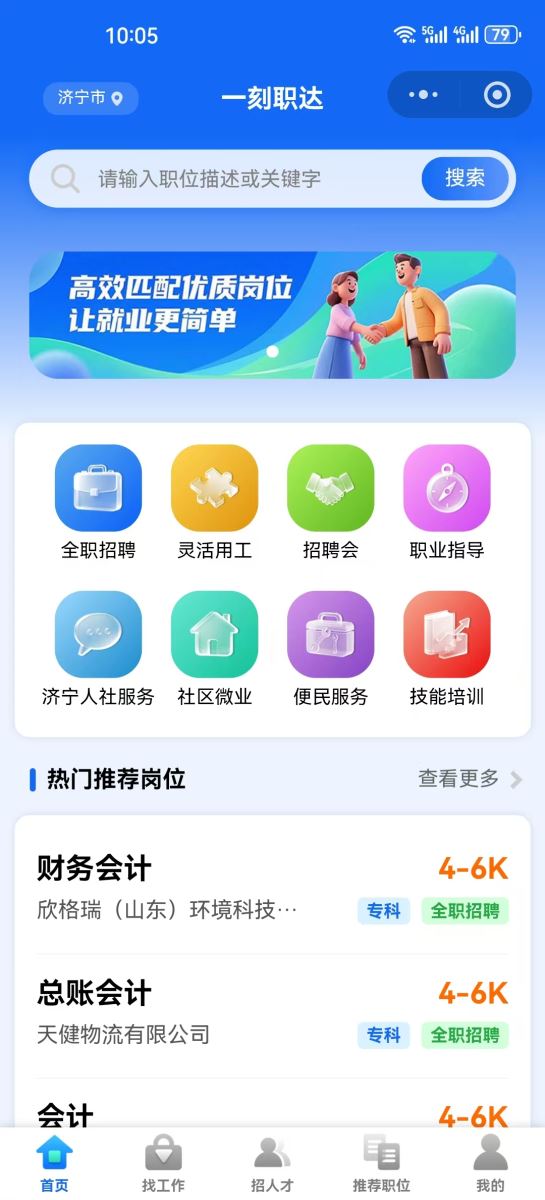 作为济宁“双圈融合”建设的关键数字化载体,服务平台以“精准、便捷、多元”为核心,构建了“线上小程序+线下服务站+智能终端”的立体服务网络,功能覆盖就业、便民等全场景需求。