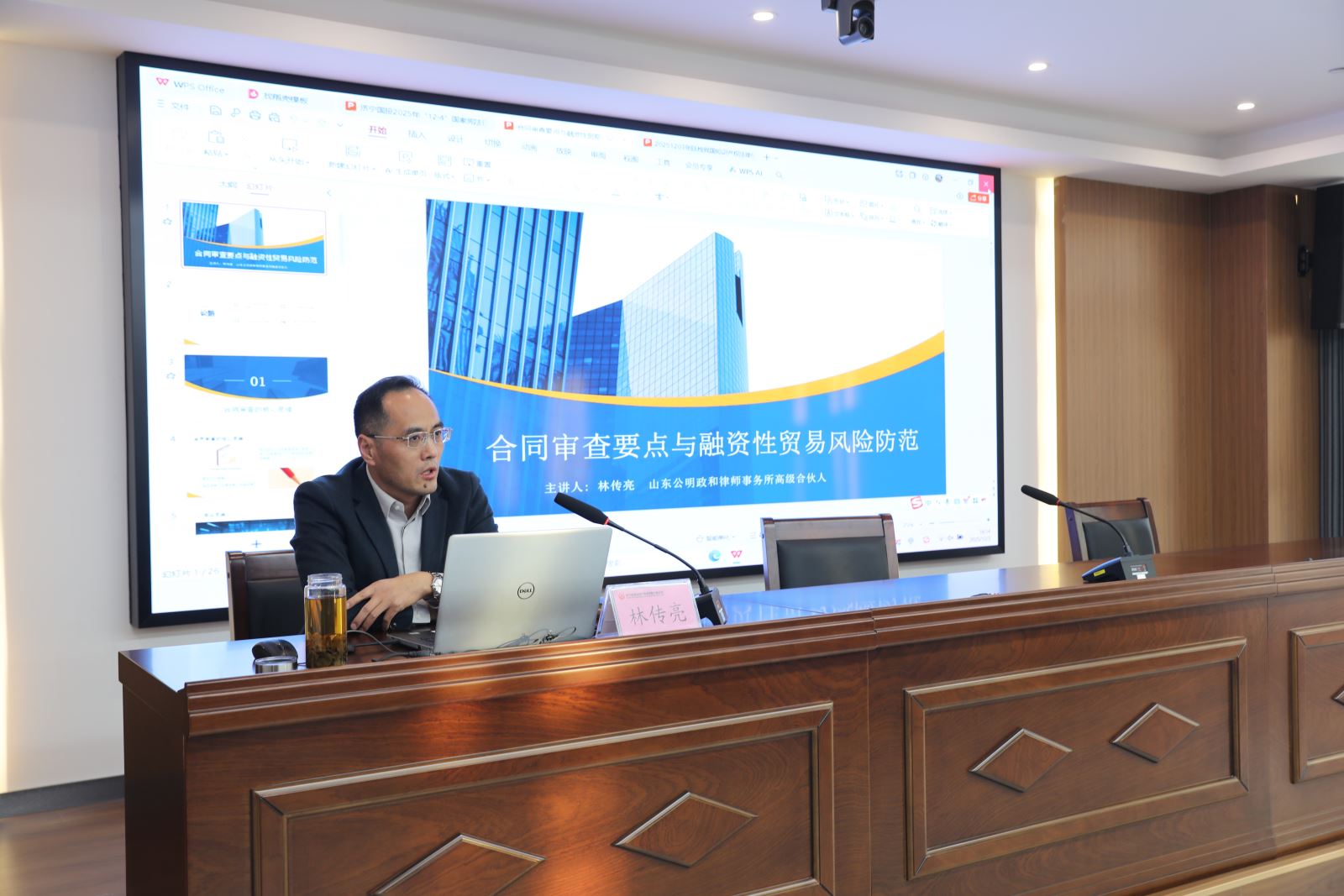 启动现场,宣读公司活动方案,开展“‘宪’在行动,‘法’入人心”条幅签名活动,举办法律法规知识讲座。突出“宪”学“宪”用,针对知识产权和贸易相关法律难题,特邀市委党校党委委员、副校长,市法学会“百名法学家”讲师团成员张廷栓副教授和山东公明政和律师事务所高级合伙人林传亮律师分别就“知识产权法律法规解读”“合同审查要点与融资性贸易风险防范”进行专题培训,有效提升了广大干部职工的法律意识和风险防范能力,确保把每一份合同都写成推动公司高质量发展的“安全通行证”。